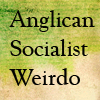 Description: the words Anglican Socialist Weirdo on a Green and Yellow abstract background