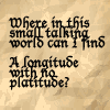 Description: where in this small-talking world can I find a longitude with no platitude?