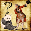 Description: David Garrick as Benedick, a sad panda, a question mark